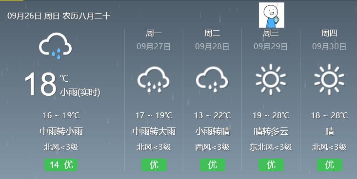 30日:陕北、关中多云间晴天,陕南多云间阴天。10月1日:全省多云间晴天。