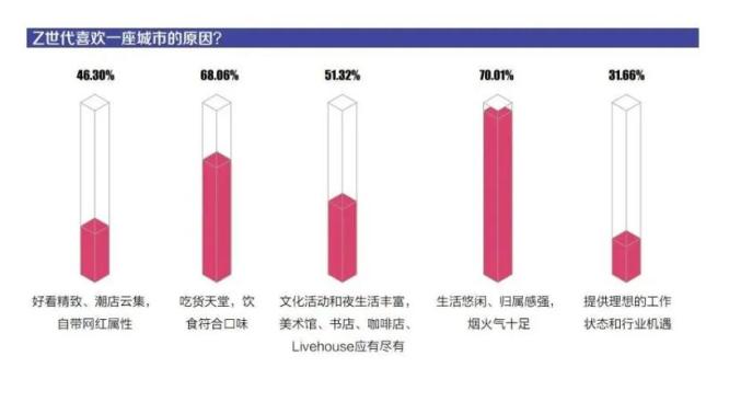 年轻人喜欢一座城市的原因有哪些?《2021新一线城市Z世代青年消费趋势报告》显示,超过70%的人将“生活悠闲、归属感强,烟火气十足”摆在首位。报告认为,受Z世代欢迎的新一线城市有三大显著特征:它们既有较高的经济发展水平,可以提供充分的职业机遇;也有咖啡馆、书店、剧本杀、酒吧这样的文化娱乐空间,足够好玩、有趣;另外,这些城市的购房压力相对比较友好,也为年轻人提供了体面的收入和生活感受。