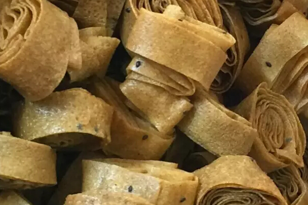 老北京小吃“薄脆”,这也是油炸食品,也称作“炸薄脆”。即薄又脆,但薄而不碎,脆而不艮,香酥可口。薄脆可以现制现吃,也可以捏碎与菜馅拌和当素馅的原料,现在通常放在煎饼中,与口感绵软的煎饼相得益彰。