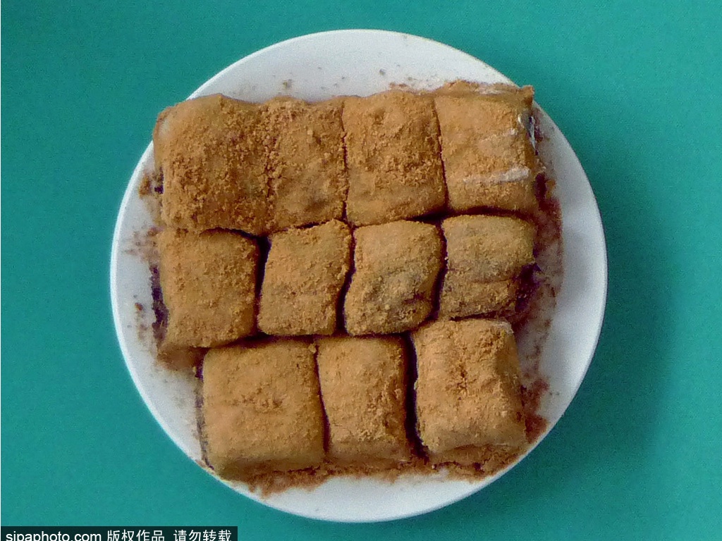 驴打滚又称豆面糕,是北京小吃中的古老品种之一,豆面糕以黄豆面为其主要原料,故称豆面糕。但为什么又称“驴打滚”呢?似乎是一种形象比喻,制得后放在黄豆面中滚一下,如郊野真驴打滚,扬起灰尘似的,故而得名。这一点连前人也发出疑问。《燕都小食品杂咏》中就说:“红糖水馅巧安排,黄面成团豆里埋。何事群呼 ‘驴打滚’,称名未免近诙谐。”还说:“黄豆粘米,蒸熟,裹以红糖水馅,滚于炒豆面中,置盘上售之,取名‘驴打滚’真不可思议之称也。”可见“驴打滚”的叫法已约定俗成。