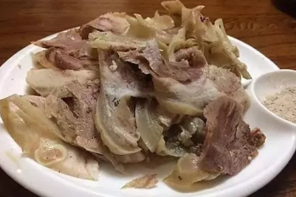 白水羊头是北京小吃中的精品,它是羊头用白水煮熟切片,撒上椒盐的一种吃食。色白洁净,肉片薄而大,脆嫩清鲜,醇香不腻,佐餐下酒皆宜。