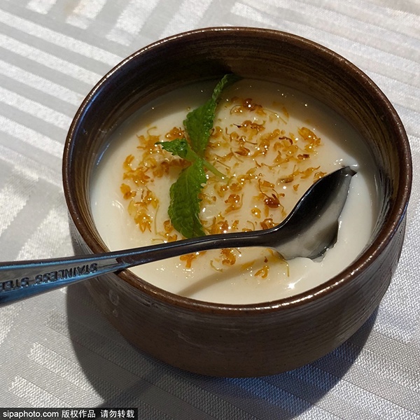 杏仁豆腐色泽洁白,口感细腻润滑,甘甜醇厚。有润肠、养肺、止咳的功效。夏天把杏仁豆腐放入冰箱冰镇着,吃的时候取出来兑入冰镇过的桂花糖汁。