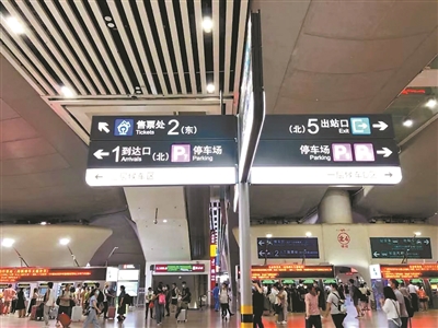 自从南站南路和北路人行过街便桥建成后,位于站厅外的P4、P8停车场常有大量空余车位,车辆可直接驶入高架桥离开,避免堵车之苦,旅客停好车、步行过桥、全程无路障,拖行李也无阻力,5分钟即可直达站内。
