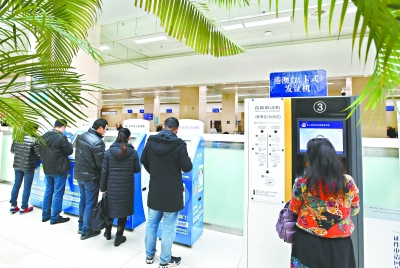 12月2日,东湖高新区光谷政务服务中心,市民在自助办证和处理机前办理相关业务,有效提高办事效率