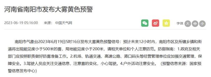 原标题:《雨!雾!雷暴大风!河南多地黄色预警》