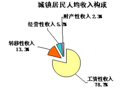 全年城镇居民人均可支配收入22224元,比上年名义增长17.5%,扣除价格因素,实际增长11.5%。在城镇居民人均总收入中,工资性收入18787元,比上年名义增长17.0%;转移性收入3169元,增长26.3%;经营性收入1357元,增长24.9%;财产性收入548元,增长11.8%。城镇居民人均生活消费支出15833元,比上年增加1988元,增长14.4%。