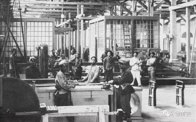 石家庄正太铁路总装车间 洋人与中国工人在一起摄于1904-1907年间