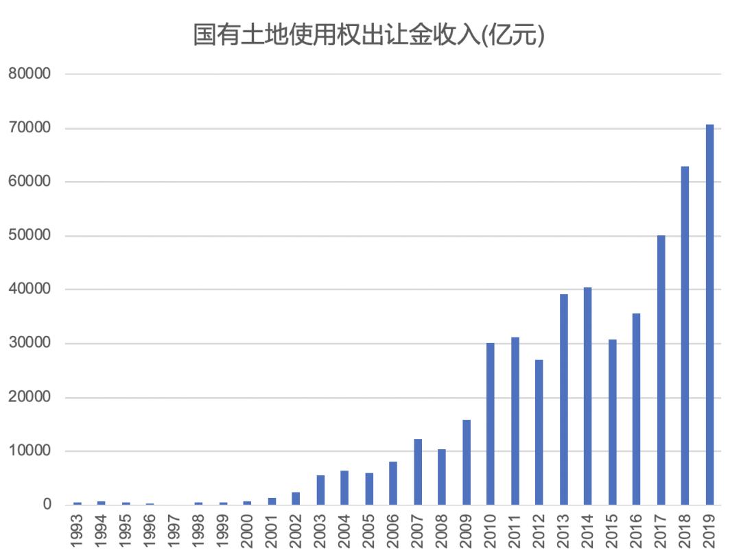 图5 1993-2019年国有土地使用权出让金收入变化图