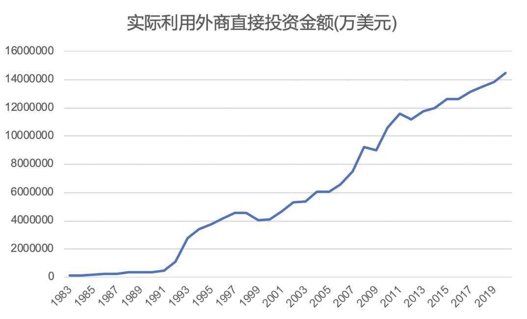 图4 1983-2020年实际利用外商直接投资金额变化图