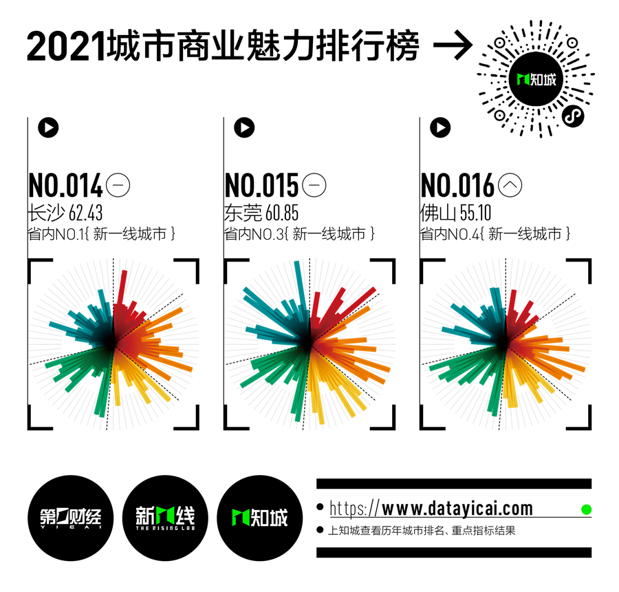其中,分列13至15位的郑州、长沙、东莞,总排名相对稳定,后四位的争夺则更为激烈。