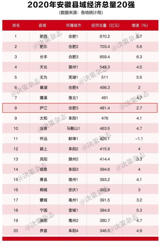 原标题:《安徽县域经济20强出炉!庐江排名……》