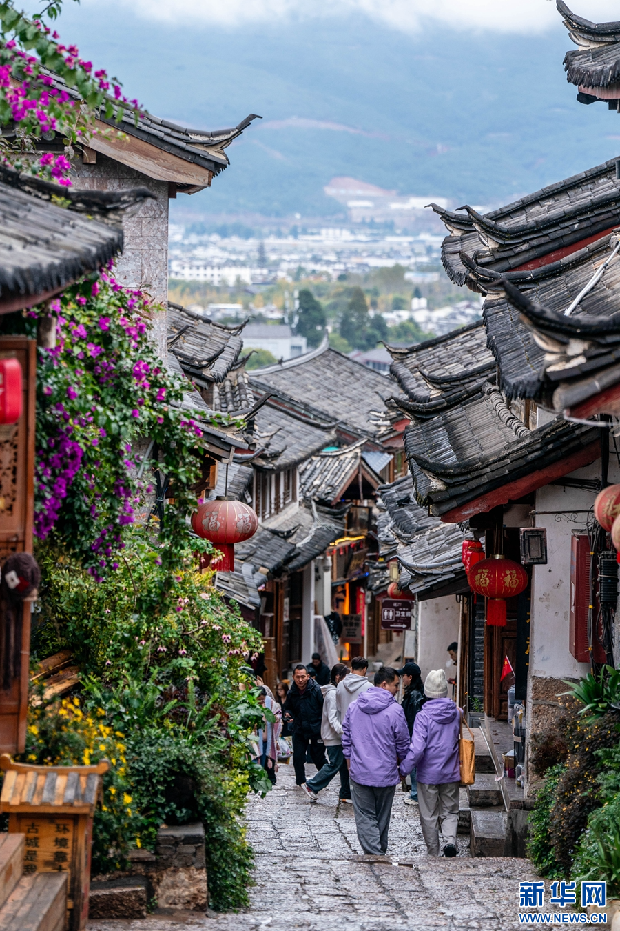 游客在丽江古城游玩(资料图)。新华社记者 胡超 摄