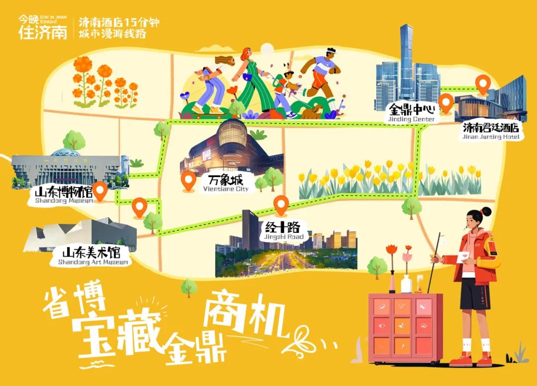 线路点位:济南君廷酒店→山东博物馆→山东美术馆→经十路→万象城→金鼎中心→济南君廷酒店