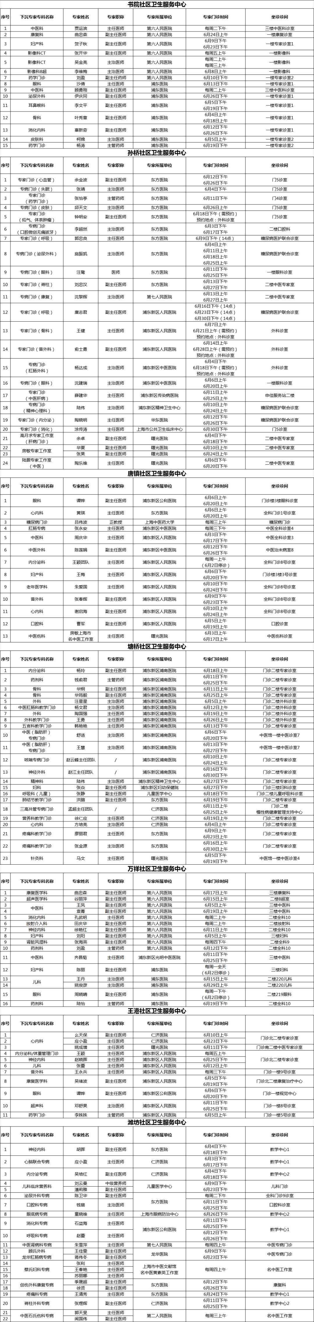 浦东新区持续推进社区卫生服务提质增能,加强分级诊疗。在有关市级医院、区属医院的大力支持下,浦东新区各社区卫生服务中心结合社区实际需求,开设上级医院“专家进社区”门诊,持续为辖区居民提供“家门口”的适宜专科服务。2025年6月专家门诊时间可参见下表: