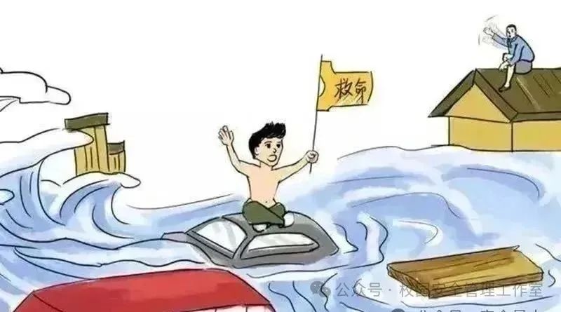 8、如已被卷入洪水中,一定要尽可能抓住固定的或能漂浮的东西,寻找机会逃生。