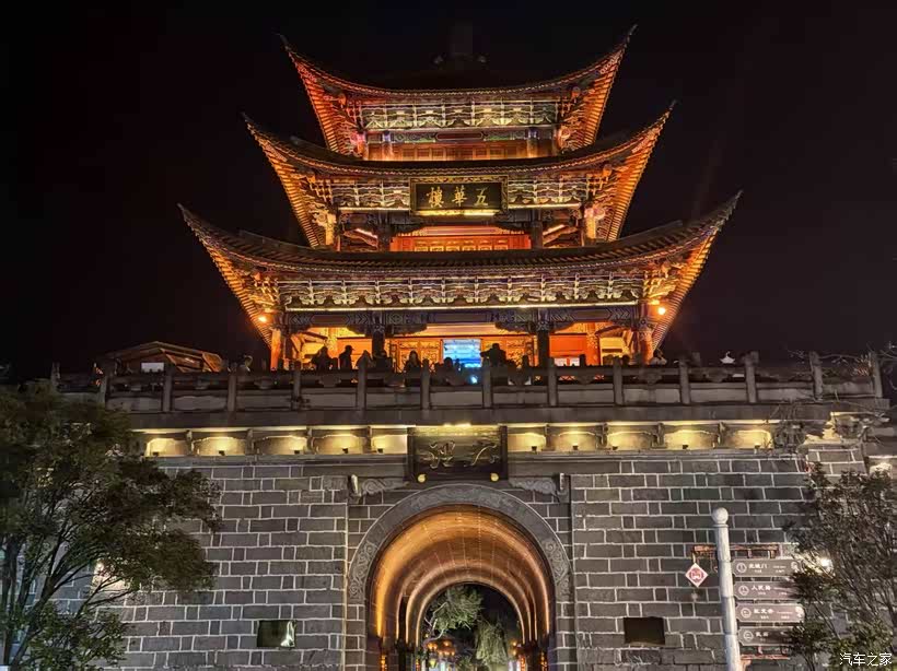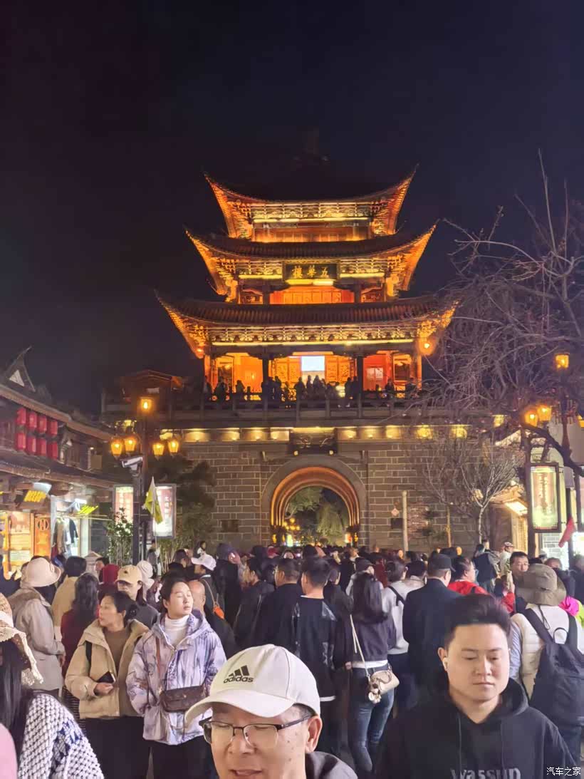 吃完,在古城看夜景。晚上的古城热闹非凡,各种口音的人都有,年龄大的多是跟团游的,住在城外,年轻人都住城里客栈,吃烧烤喝啤酒,享受生活的美好!夜幕降临,华灯初上,古城的繁华才刚刚开始。