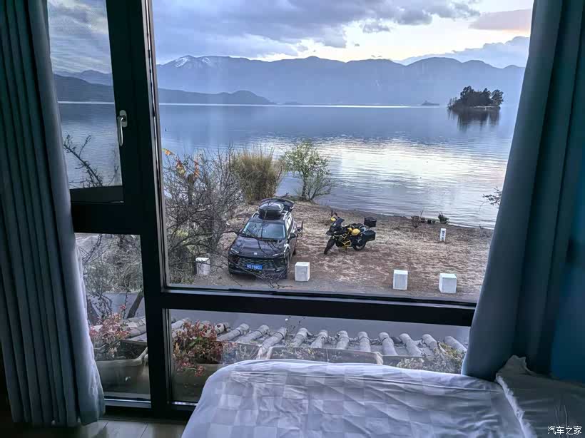 我们住宿在湖边的客栈,推开窗户就是湖景,