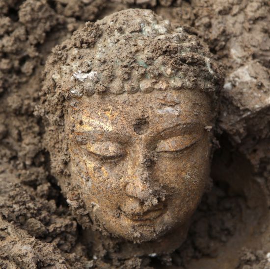 令考古队员们惊喜的是,谜底终于揭晓了。2012年1月10日,邺城考古队突然接到临漳县文物局和执法队的紧急通报,在习文乡北吴庄村北的漳河河滩内发现盗掘迹象。经考古钻探确认,近5米厚的流沙之下有石块,探铲带上来的粉末显示石材为邺城造像常用的汉白玉。