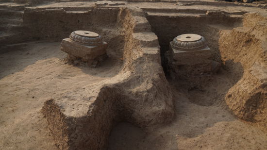 其实早在1998年,邺城考古队就在赵彭城佛寺东侧的核桃园村西南地发现了多处大型夯土遗迹。自2012年至今,邺城考古队先后发现和发掘了寺院的塔基、大殿、门址及两翼连廊等建筑,并推定该遗址为北齐天保九年文宣帝高洋所建大庄严寺。