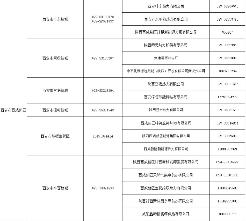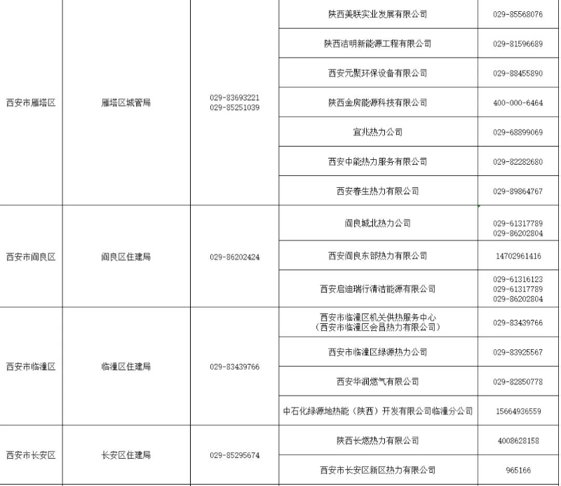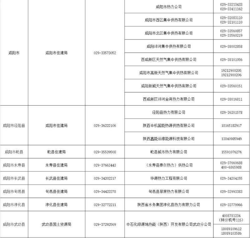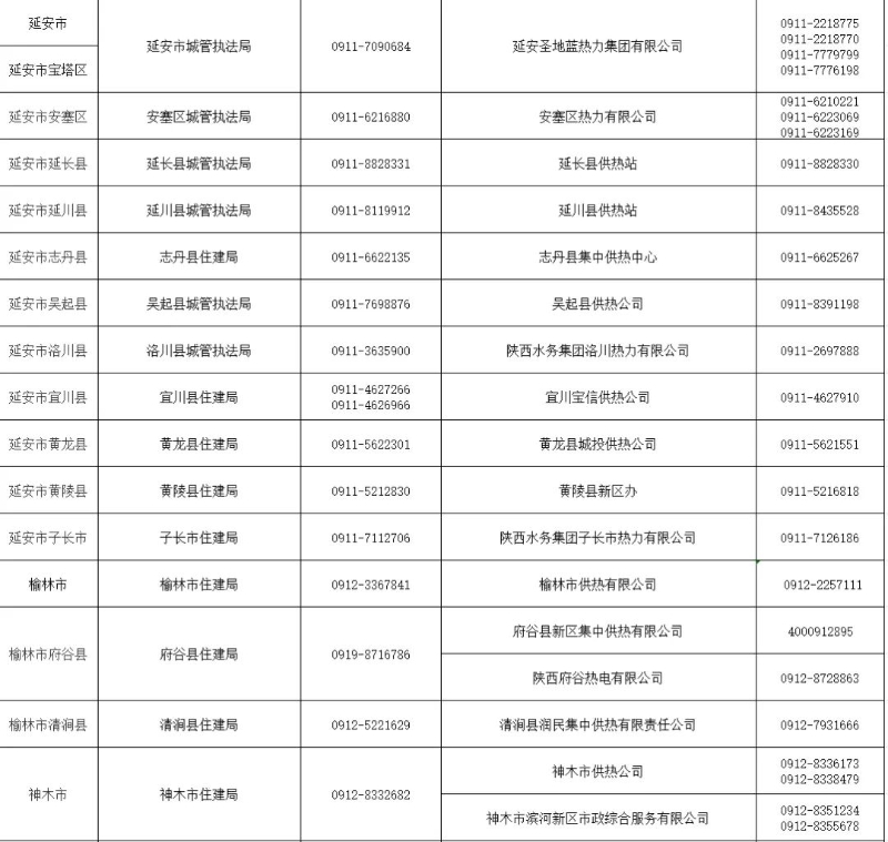 日前陕西省住房和城乡建设厅发布陕西省城镇供热管理部门监督电话企业服务电话公示