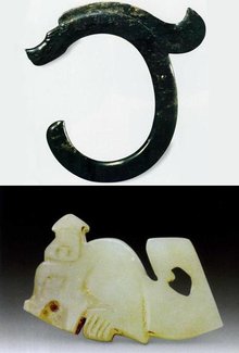 注明:上图上为山文化玉龙,下为三门峡虢国墓地出土玉龙