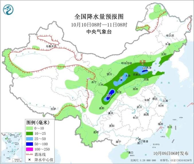 预计10月13至14日,华北、黄淮地区降水将自北向南陆续结束。受持续降雨影响,陕西、山西南部、四川盆地北部、甘肃南部等地有山洪、地质灾害或中小河流洪水气象风险,上述地区需警惕次生灾害的发生。