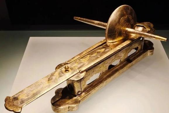鎏金鸿雁流云纹银茶碾子。现藏于法门寺博物馆