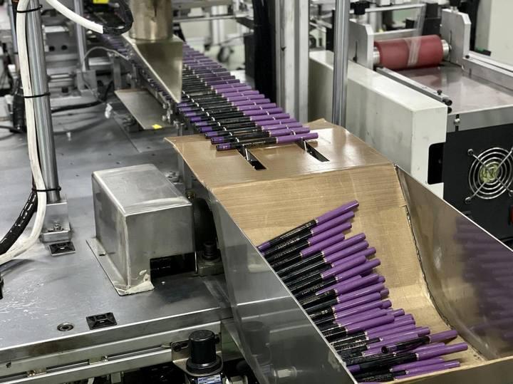 爱诗化妆品公司平均不到一秒钟,就有一支眉笔走下生产线。(奚悦 摄)