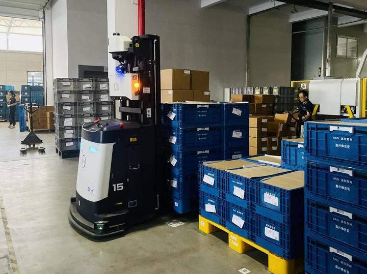 利佛德公司内,智能化叉车正在进行搬运作业。(奚悦 摄)