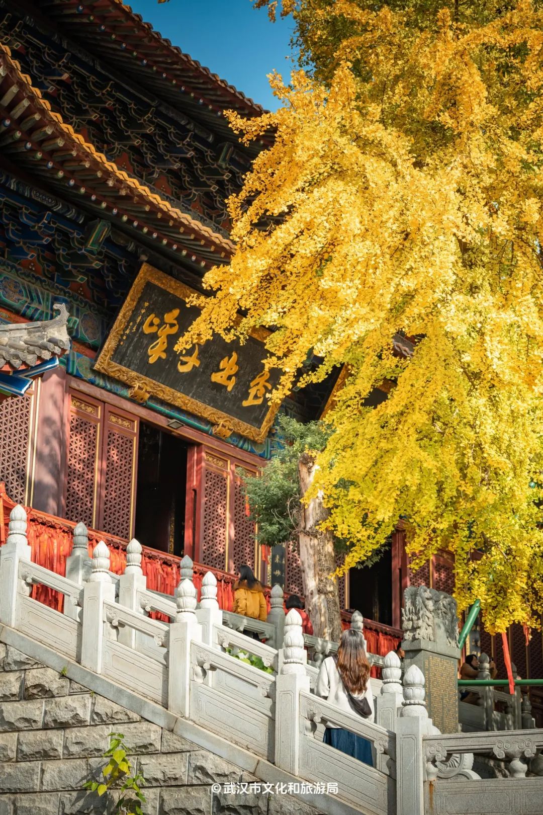 它还拥有武汉最美的银杏,黄墙朱瓦,一地璀璨鎏金,是现在武汉年轻人们闲暇时最流行的好去处。