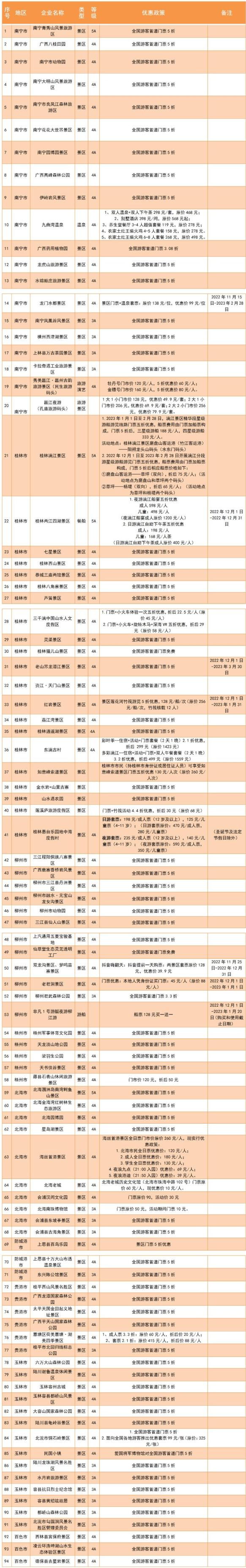 2022年12月1日至2023年2月28日,以下文旅企业对全国游客实行首道门票5折优惠政策(法定节假日除外)。另有备注的按备注执行优惠措施。