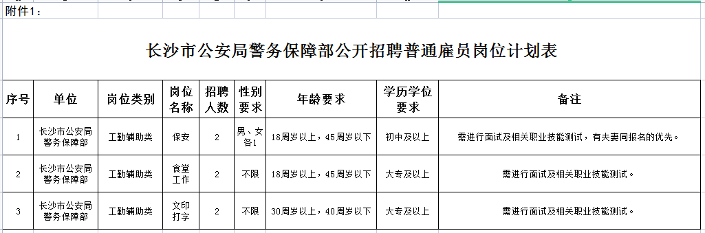 1、2023年长沙市公安局警务保障部公开招聘普通雇员岗位计划表