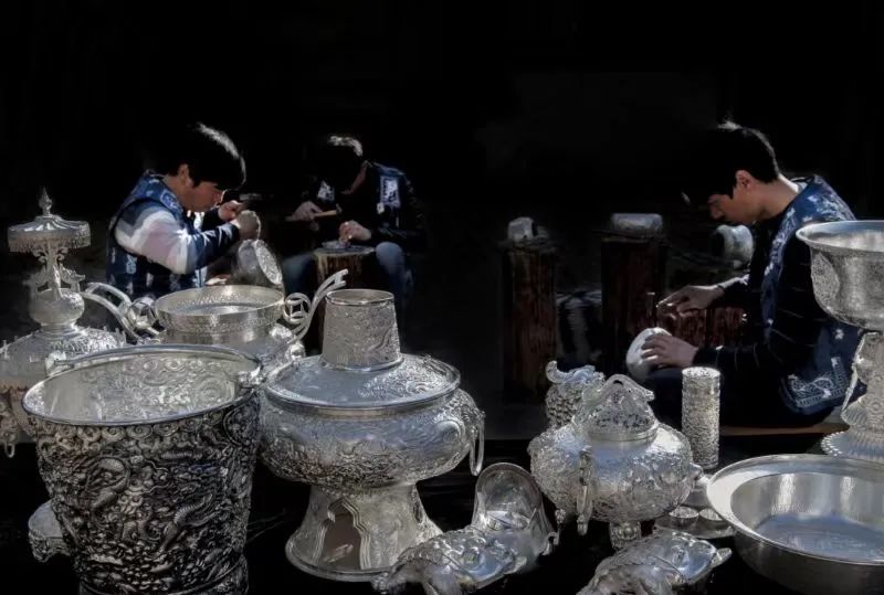 走进鹤庆新华银器小镇,气势恢宏的银牌坊映入眼帘。漫步街巷中,“叮叮当当”的敲打声此起彼伏,不绝于耳,透过门窗,随处可见正在打磨银器的匠人……你可以停下来观看银器制作技艺,聆听那些手艺人的故事,或者买上一对银手镯作为留念。如果逛累了,还可以到书吧小憩一会儿,品一壶茶,读一本书,或者了解拓片和锔瓷技艺,消遣闲暇时光。
