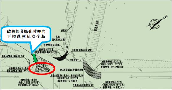 在北进口右侧增设行人驻足岛保障行人等待安全,将行人斑马线及行人灯进行位置调整,方便行人观察信号灯,保障行人过街。