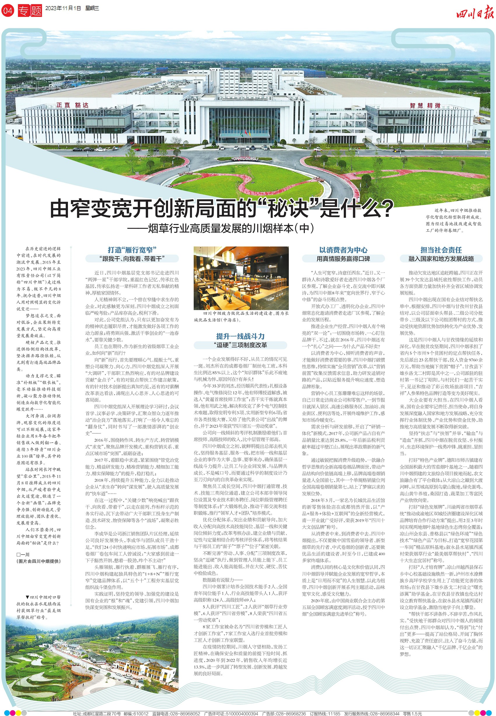 人们不禁要问,四川中烟由窄变宽开创新局面的“秘诀”是什么?