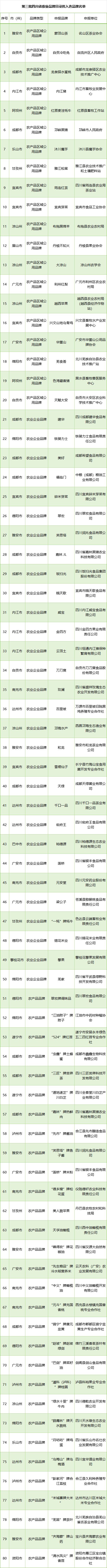 四川发布客户端消息 2月21日,四川省农业农村厅发布公示,拟对第一批、第二批四川省农业品牌目录入选品牌实施动态调整,拟优选80个品牌入选第三批四川省农业品牌目录,公示期5个工作日。