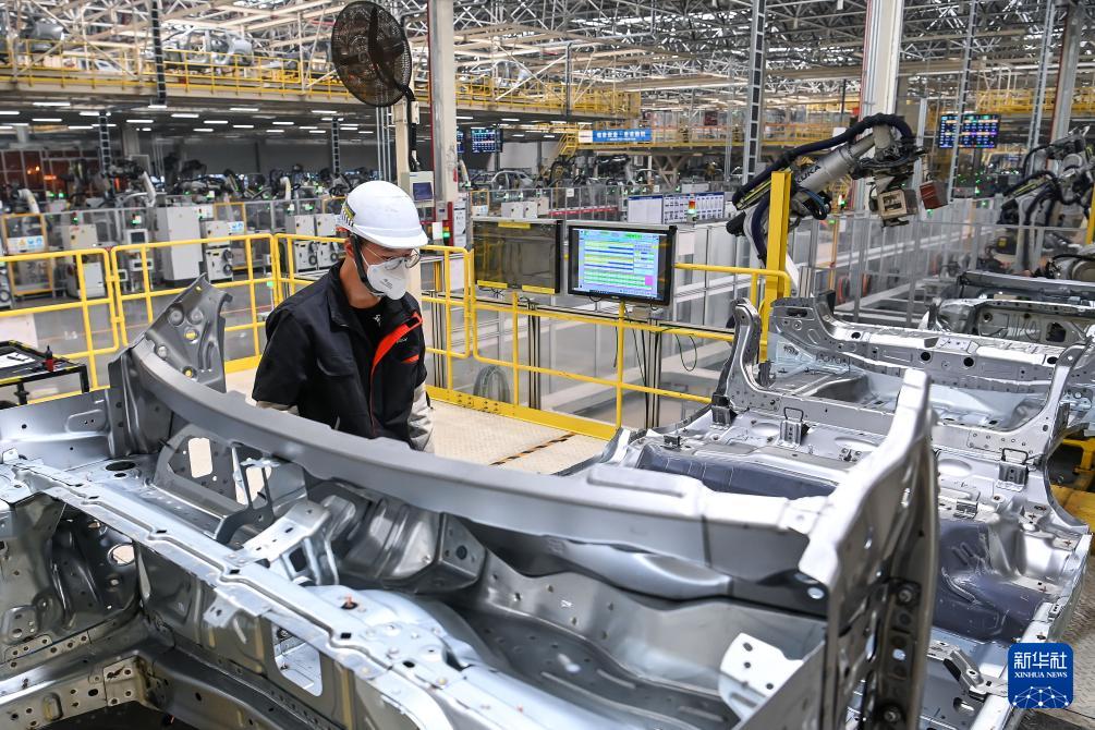 2月26日,工作人员在吉利汽车宝鸡制造基地焊装厂检查车辆零部件。