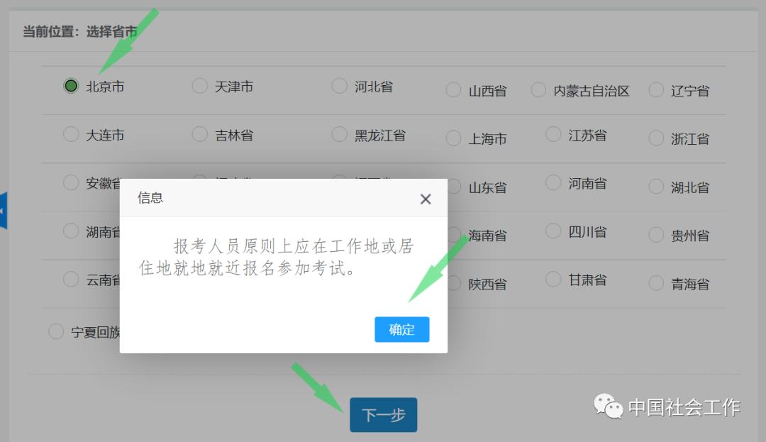 2.就近选择报考省份(以北京为例),点击“下一步”。