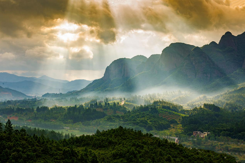 云海日出 独特的地形和多变、湿润的气候,造就了本区壮观的云雾霞光,最迷人之处在于时而似万马奔腾,时而浓雾空朦,时而薄雾如纱的云海之上,一轮红日斜挂,此景此情,催人奋进。
