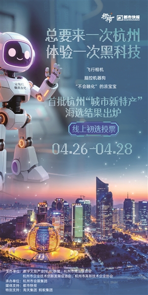 即日起,杭州“城市新特产”进入线上初选阶段,4月26日至4月28日,投票活动开启。