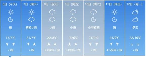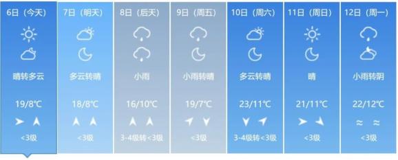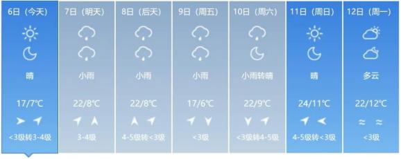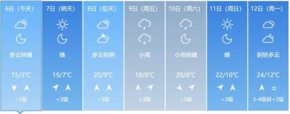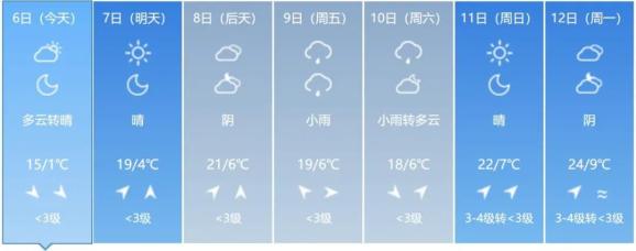 今天夜间南部地区最低气温为1~3℃,其他地区5~8℃;明天白天全省大部分地区最高气温为18~22℃。
