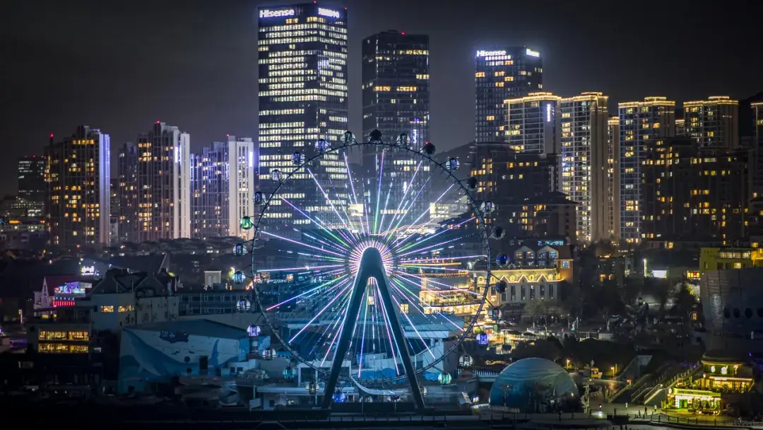 市区唯一近海地标,66米高空,360°全景轿厢,13分14秒的云端告白。夜幕降临,近十万颗LED点亮青岛的“海上光幕”,与星辰共舞,许你一场永不落幕的璀璨之约!