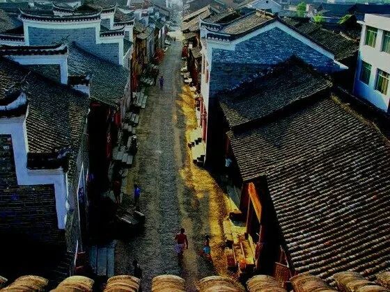 街巷横纵交错、户户相连,在这里走着,像是穿行于迷宫一样。古镇的建筑风格是典型的徽派建筑,青瓦白墙、古香古色。