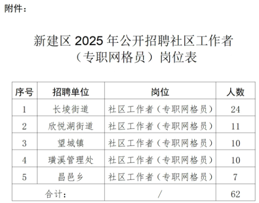 新建区2025年公开招聘社区工作者(专职网格员)公告【62人】