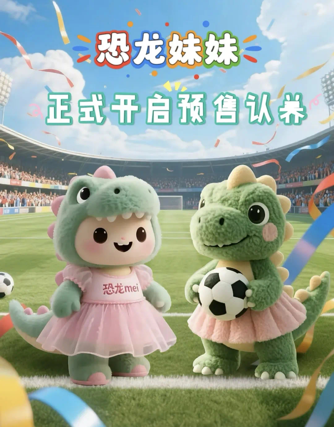 恐龙妹有两个形象,活力四射的“足球霸王龙”与甜美可人的“蓬裙恐龙妹”,精准捕捉不同消费群体的审美偏好。