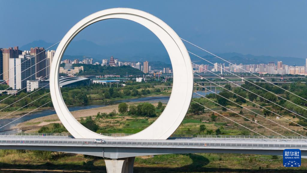 宝鸡市渭河两岸景色(无人机照片,2024年9月5日摄)。