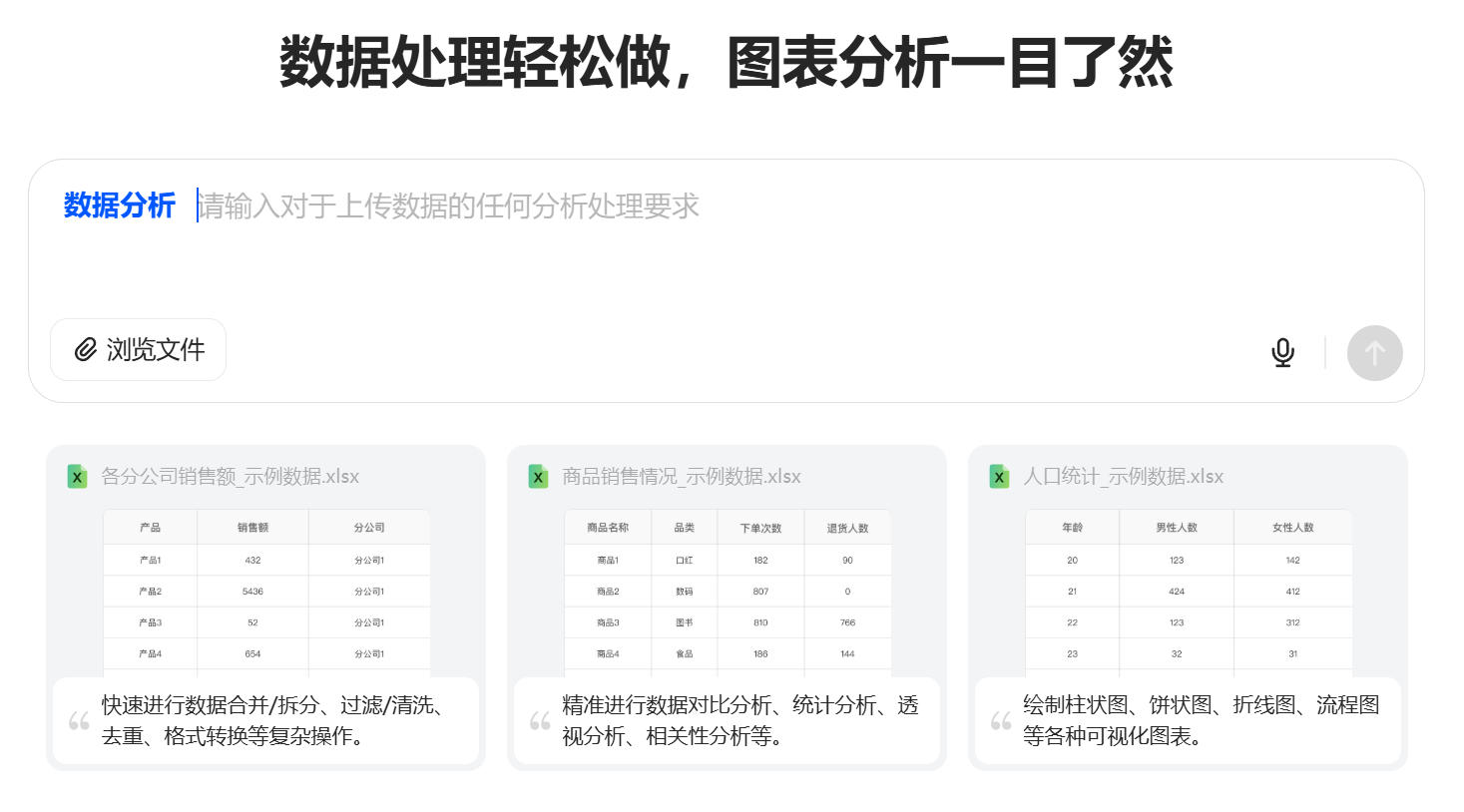 若不知道要怎么分析,可直接输入 “帮我分析这份数据的关键信息,生成可视化图表和报告”。