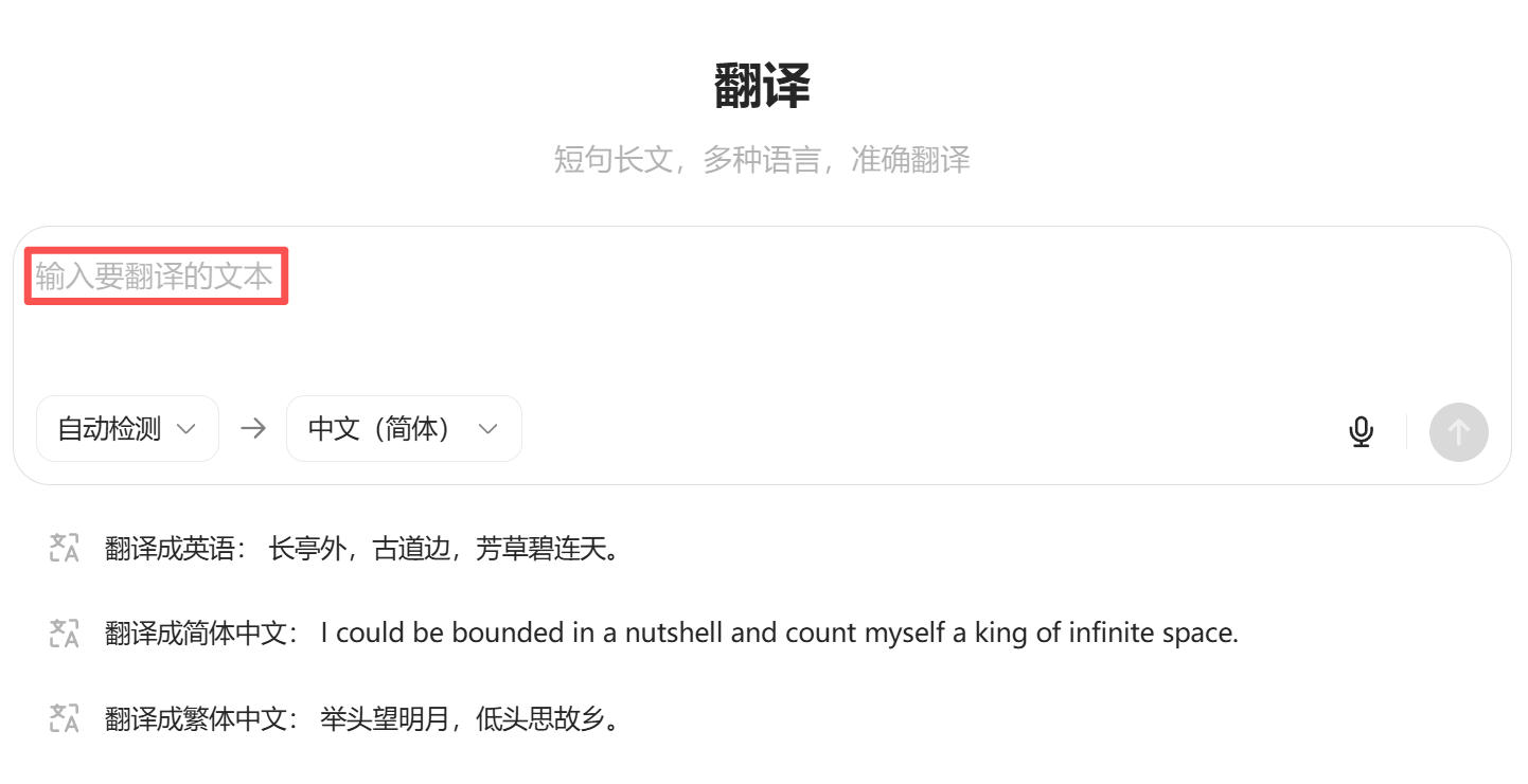 输入需要翻译的文本(支持复制粘贴、手动输入,可长可短)。