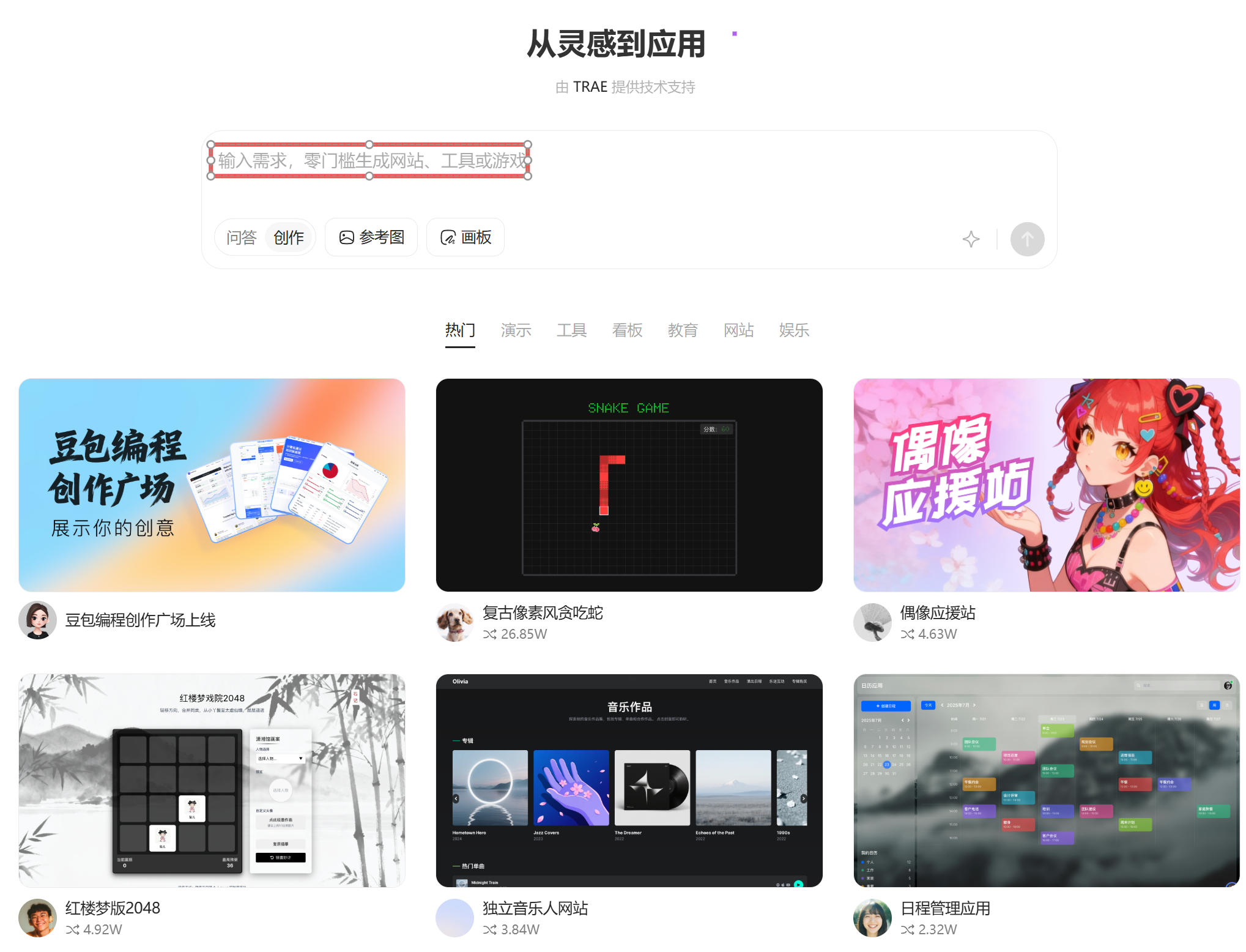 不知道怎么描述需求?→ 点击每个功能界面的 “示例” 按钮,直接参考官方给出的模板。