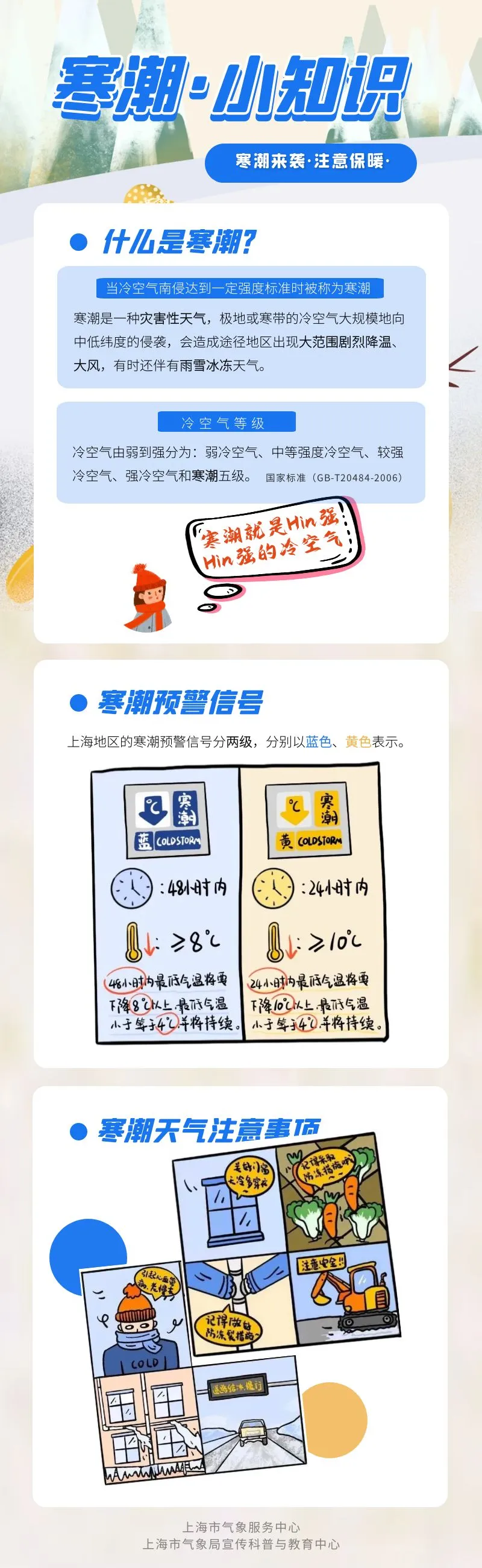 上海气象部门表示,常年平均来看,徐家汇站下半年的首场寒潮通常是出现在12月上旬,今年提前了近三周时间。天气骤冷,人体一时无法适应,请及时添衣保暖,注意预防呼吸道、心脑血管等疾病。此外,初霜冻对农作物、绿植有不利影响,也需注意防范。